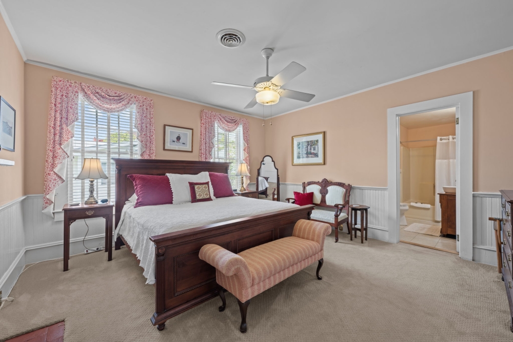 The Benjamin Ellis House-A Distinguished Historic Bed & Breakfast in the Heart of Downtown New Bern. Nestled in the heart of New Bern's renowned downtown historic district, the Benjamin Ellis House is a beautifully preserved and fully operational historic inn offering timeless elegance, architectural charm, and an exceptional opportunity to acquire one of the city's most established and successful Bed & Breakfasts. With a strong 40-year history as a viable and contributing business to the historic district, this remarkable property is as much an investment in legacy as it is in lifestyle. The inn features Nine tastefully appointed guest rooms, each with its own private bath, blending period detail with modern comfort. The gracious interiors include a welcoming parlor for guest gatherings, a warm and elegant dining room for breakfast service, and intimate spaces throughout the home for reading, conversation, and relaxation. A spacious, covered front porch with classic rocking chairs invites guests to slow down and enjoy the ambiance of this charming Southern town. A true centerpiece of the property is the expansive, custom designed commercial kitchen, a true chef's dream, crafted by the current owners. The kitchen meets requirements for a restaurant permit presenting unique income-generating possibilities including private dinners, cooking demonstrations, or culinary events, should the next owner choose to expand beyond traditional lodging services. The property includes several private accommodations in addition to the guest suites. A separate 1,857-square-foot owner's cottage sits peacefully on the grounds, offering full privacy and modern amenities within easy reach of the main house. The owners' cottage was completely redesigned and renovated in 2019/2020. Above the detached garage, a 511 SF one-bedroom apartment provides additional flexibility for staff quarters, extended family, or long-term rental potential. Throughout the inn, thoughtful restoration and tasteful décor highlight the property's history while ensuring comfort and style. Off-street parking is available for guests, a valuable asset in this central location,and the property lies within walking distance to New Bern's riverfront, scenic parks, restaurants, breweries, boutique shopping, event venues and key historic attractions including Tryon Palace and the North Carolina History Center. Under current ownership for nearly a decade, the Benjamin Ellis House enjoys strong occupancy rates that exceed both local and national averages. With its proven performance, prime location, and potential for additional hospitality offerings, this is a rare opportunity to acquire a turnkey historic inn with a longstanding reputation and considerable upside.