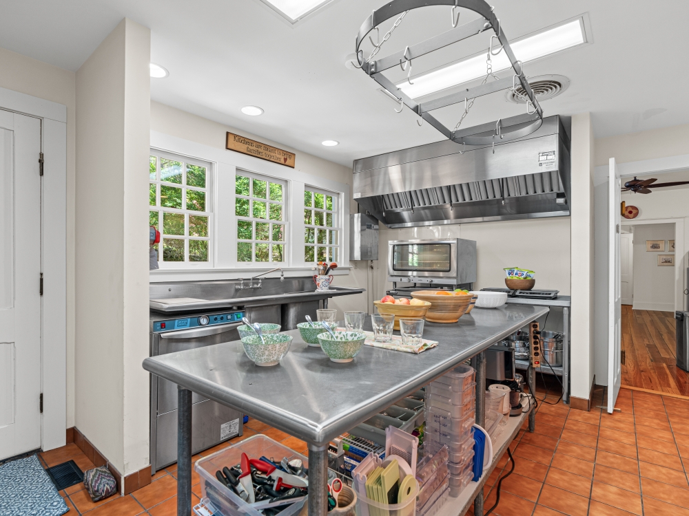 A commercially licensed kitchen, large dining room, and modern updates allows for an elevated guest experience.