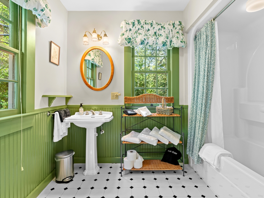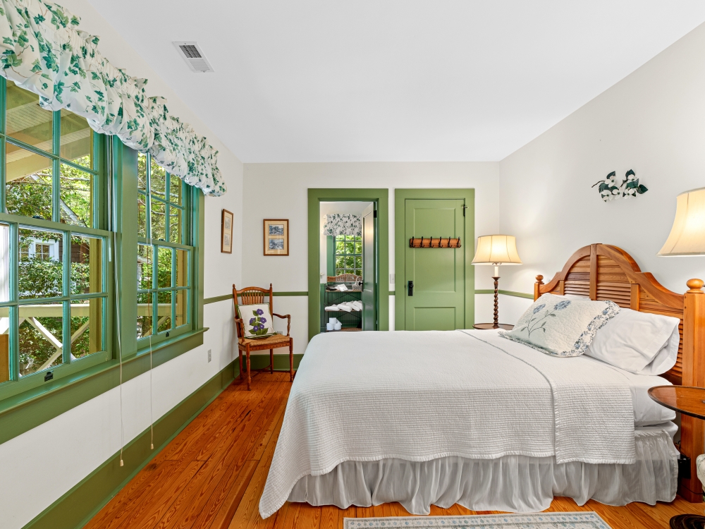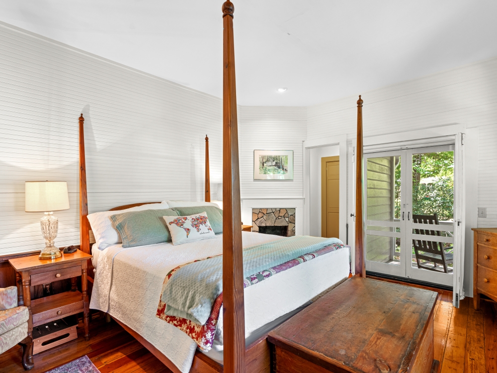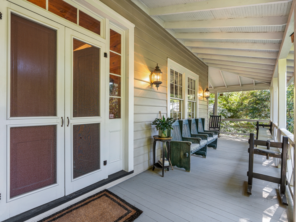 Step onto multiple porches and listen to the sounds of the waterfall features, soak in the hot tub, or stroll the grounds under century old trees.