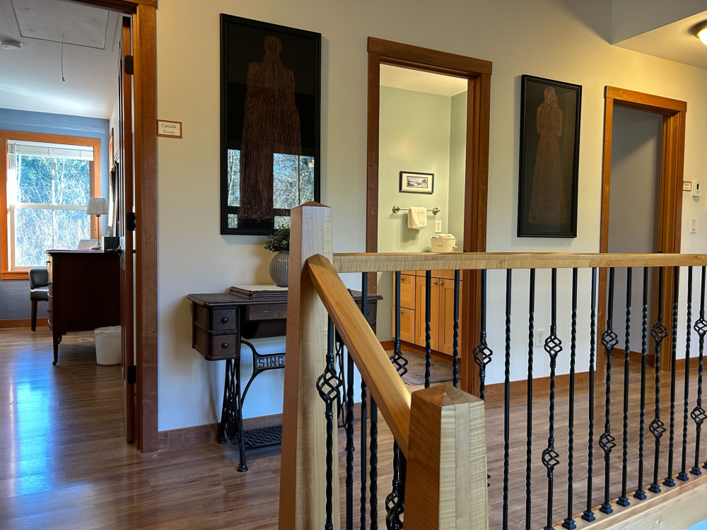 This B&B includes a spacious owner’s suite at the end of the upper level consisting of a large bedroom with a view and ensuite bath with a deep, partially recessed round soaking tub. The house also includes an additional 900sf unfinished bonus room over the garage as a blank slate for your imagination. We’ve hosted over 60 people there for various events.