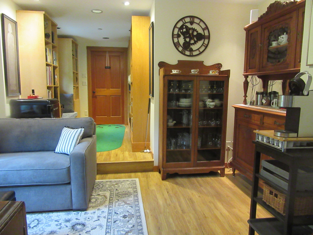Outside, guests will enjoy plenty of parking on site, an artful cobblestone courtyard with delightful fountain, stream bed and two seating nooks, a fire pit in a grassy field, an abundance of restored native plants, wildlife, and the neighboring sheep farm. There is a small estate vineyard that produces 30-50 bottles/year of a red blend. A covered back patio offers wide views of the natural wetland and wildlife behind the house; the property includes some protected wetland areas.