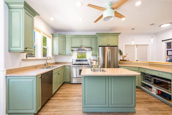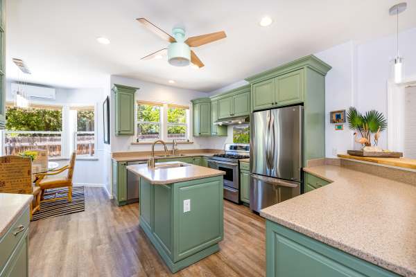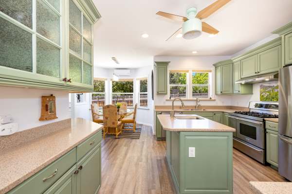 The kitchen has family seating as well as bar seating for 3-4 stools, making it a lovely location for small groups.