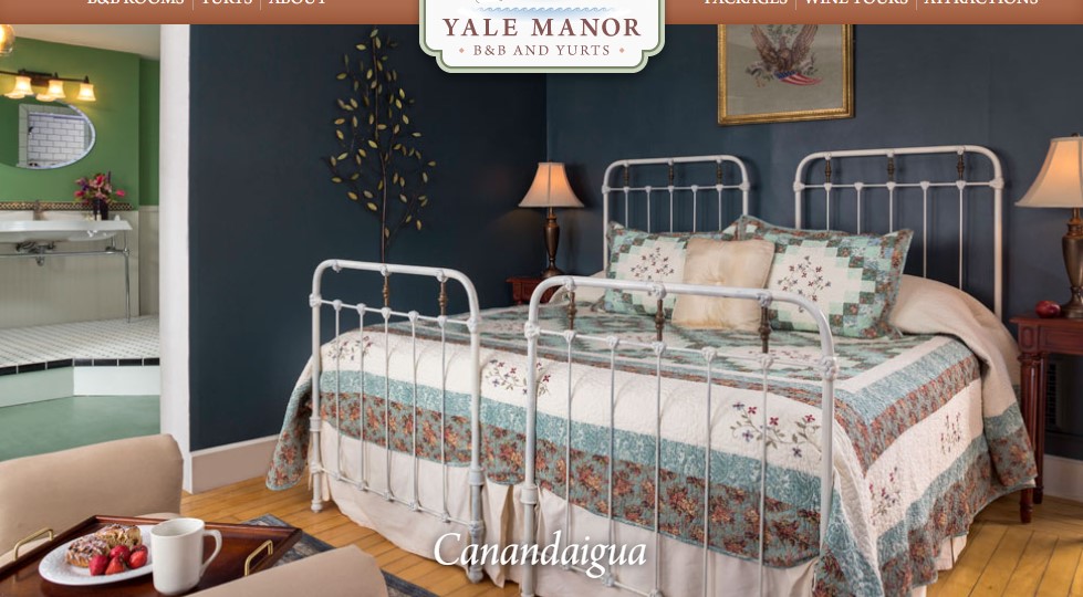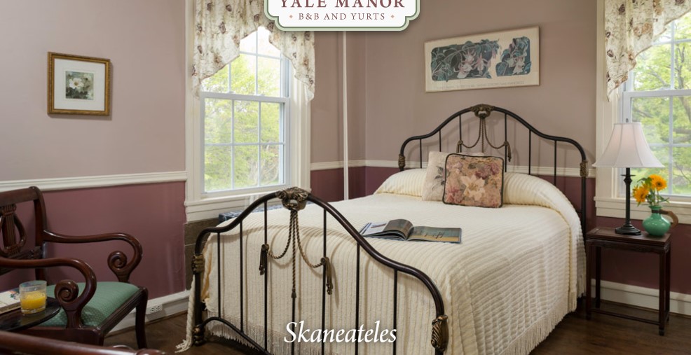 “Yale Manor Inn” - this stunning Bed and Breakfast - with an additional 4 yurts, is located in the heart of the Finger Lakes on the East side of Seneca Lake on 9.77 acres with a view of the lake.