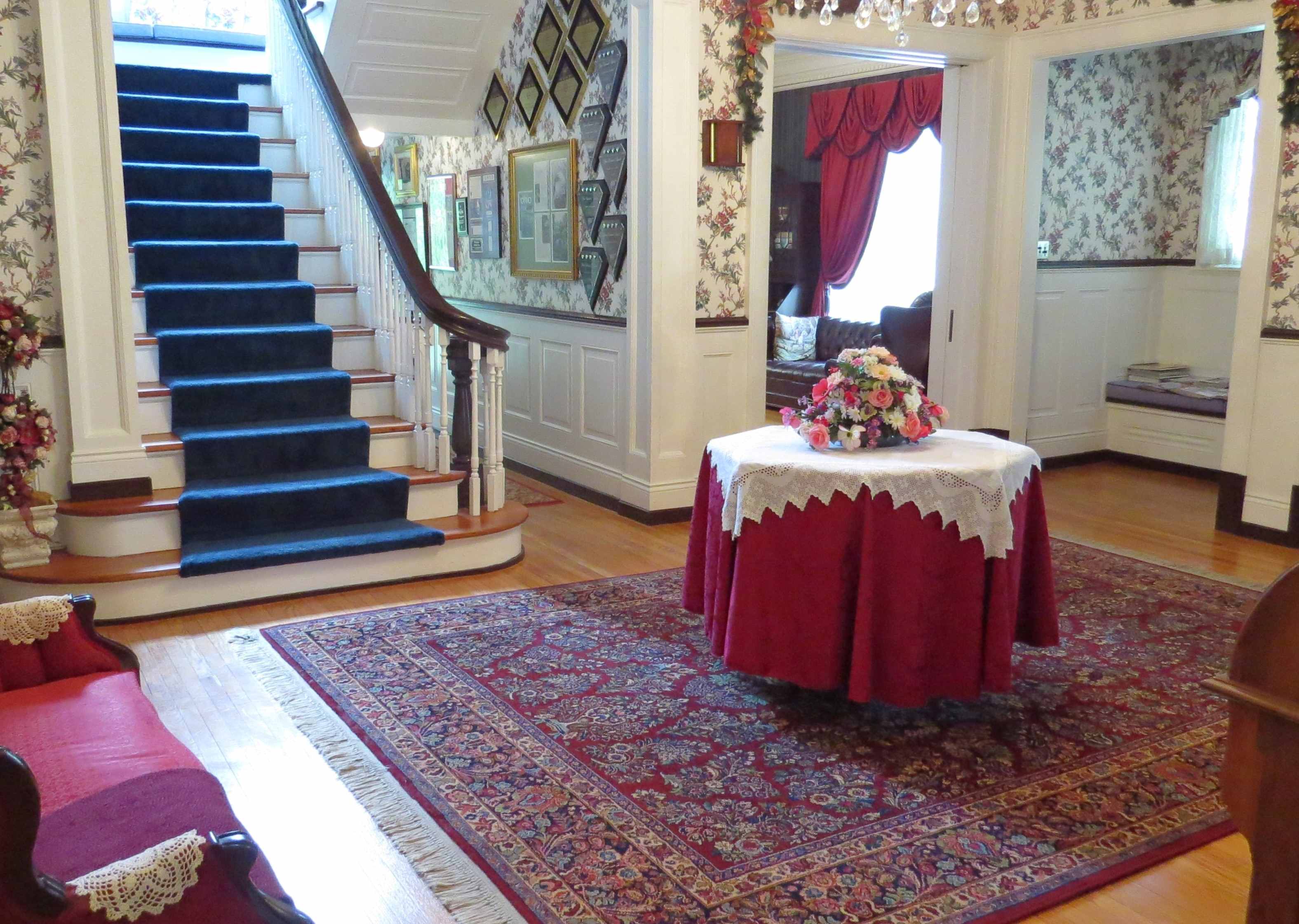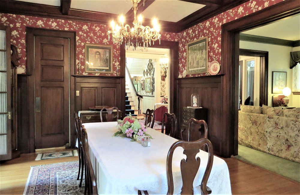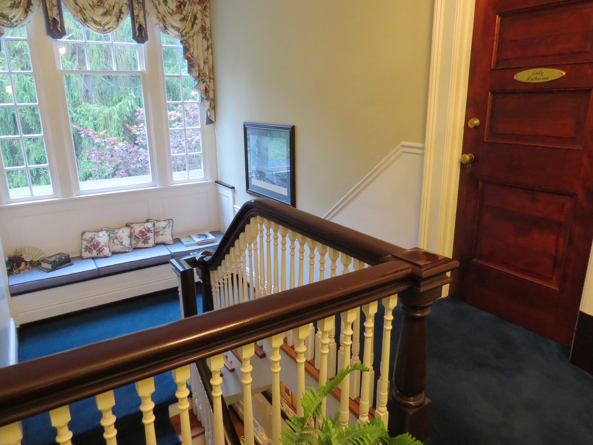 On the second level and a special feature of the Inn, there are “Five well-appointed public rooms” for guest use including a library with nearly 500 books, living room with fireplace, large foyer, mahogany paneled dining room and enclosed sun porch overlooking the gardens.