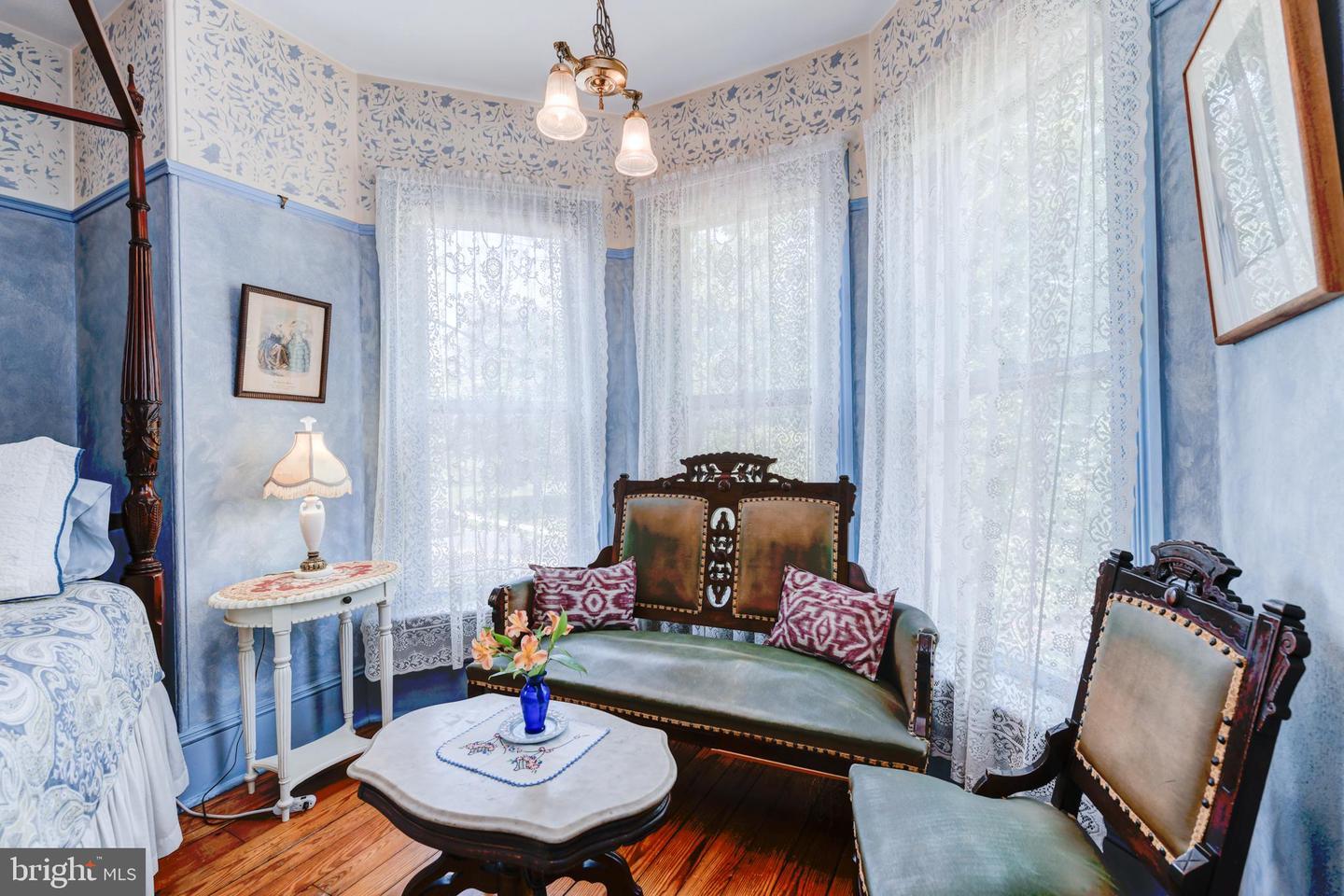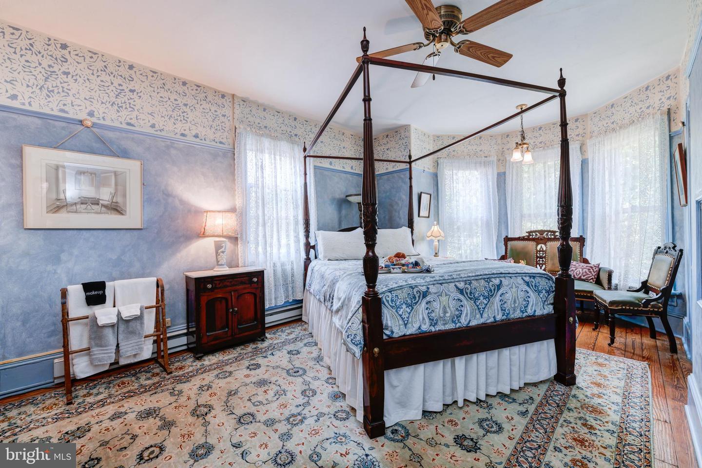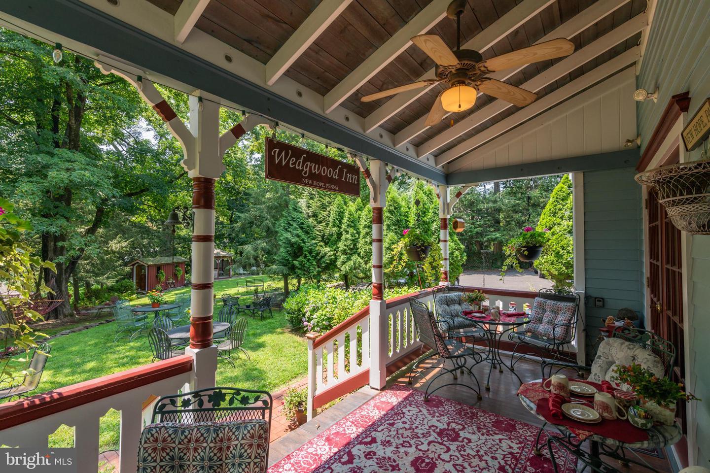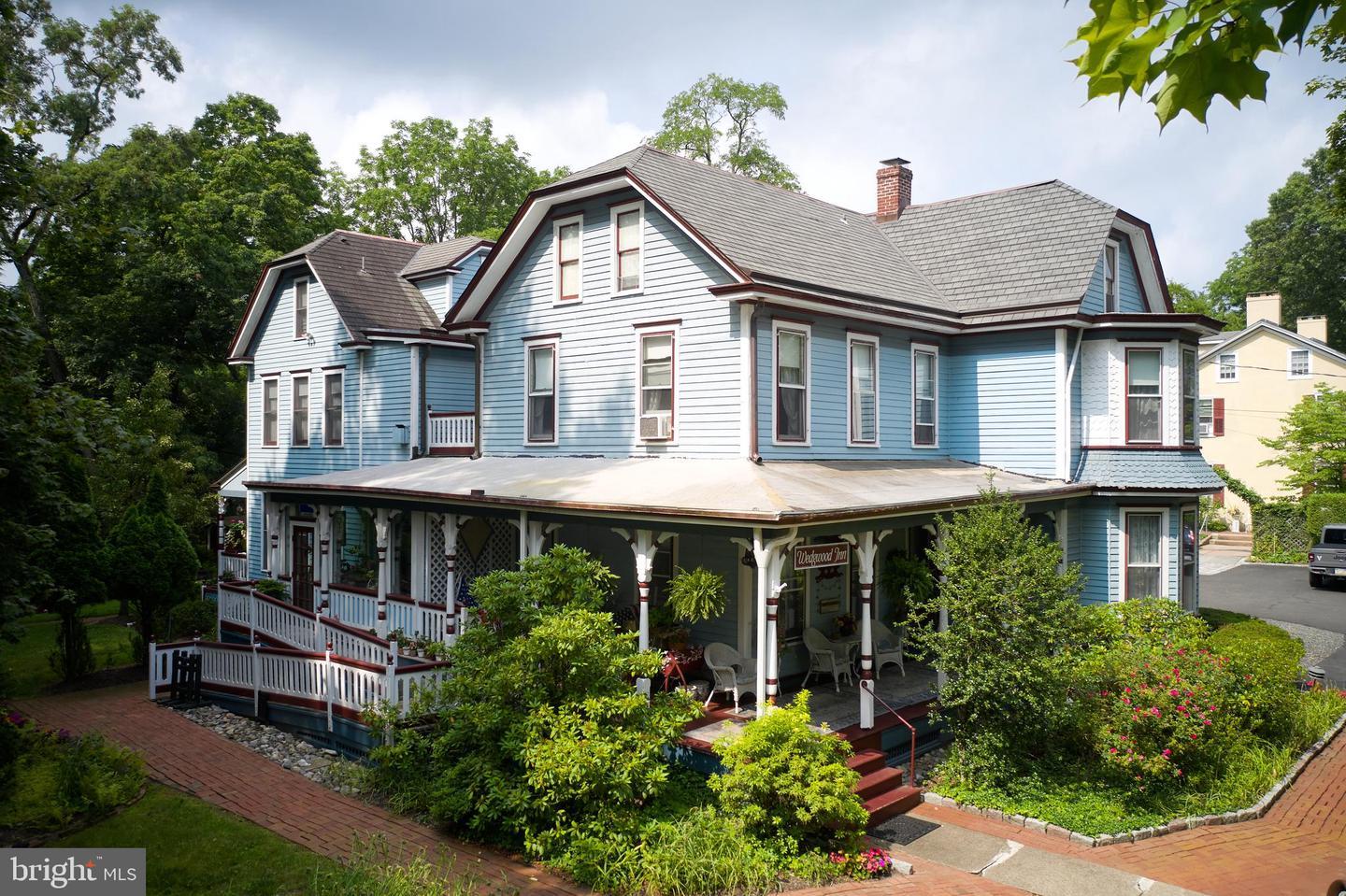| Sold separately with 10 suites or combined with 117 W. Bridge Street for a total of 18, this iconic inn is nestled along the banks of the Delaware River, and surrounded by the prettiest countryside in Bucks County. Located just an hour from Philadelphia, 90 minutes to NYC and half an hour from Princeton, New Hope has always been a favorite vacation destination for those seeking a relaxing time of art, shopping and dining. Within the National Register historic district of this vibrant riverfront village is the nationally acclaimed 1870 Wedgwood Bed & Breakfast Inn. This 6500 square foot Inn is a Wedgwood-blue Victorian "Painted Lady" listed on Bucks County Registry of Historic Places. The Inn exhibits a flourish of later Victorian architectural features including deep eaves, projecting two story bay window, a wraparound veranda with scrolled brackets, porte-cochere, and two gazebos which serve as alternative breakfast areas and event spaces. The Wedgwood Bed and Breakfast has offered perfection in lodging services since 1982 attracting both business and leisure travelers and gathering accolades and awards such as the “TripAdvisor Certificate of Excellence” and “Inn of the Year” by the popular Lanier Inn Guidebook. The property is being sold turnkey - the current owners have executed every detail of the luxury bed and breakfast experience. That meticulous design provides the perfect platform for your continued success. A deep inviting wrap around porch brings you to the double door entry and the center hall with graceful staircase to the second floor suites and flanked by the first suite on your left and the formal parlor to your right. Ten foot ceilings, marvelous original detail, polished original wood floors, tall double hung and transom windows – all the hallmarks of the skill of decades of the finest craftsmen that added their artisanship to the property over the years. Ten individual guest rooms and ensuite baths, each with individual charm and unique features, are spread over the three stories of this gracious “Painted Lady”. Each suite has its own character with antique appointments, hand painted décor such as stenciling and murals created by local artists, a carefully chosen calm color palette, repurposed vintage lighting fixtures and so much more. With loving care the owners have created and nourished this thriving business and have successfully accomplished the very best of what defines the bed and breakfast experience. Suite features include gas and electric fireplaces, climate control, lush linens, both clawfoot soaking tubs and jetted tubs, stall showers, exposed stone, gabled ceilings, several private balconies and decks, deep carpets and area rugs, several sitting rooms, generous closet space, hand crafted moldings and more. The public areas of the Inn are just as beautiful. From intimate spaces in which to relax, like the sun porch, to the larger rooms such as the recent dining room addition, each has its own distinctive features. The dining room is also a wonderful space for events. A handsome butler pantry connects the dining room to the kitchen which is thoughtfully laid out with a huge commercial stove and expansive cabinetry and counterspace. The mudroom and side entrance open to the office at the center of the building. A full stone basement houses the multi-appliance laundry area and storage. The exterior is also exceptional! In the age of Instagram you couldn’t find a better place to stage your best life photos. So many quiet seating spaces, hammocks, gazebos, picturesque red brick walkways and the sweetest to-scale recreation of one of the local covered bridges – the Van Sant covered bridge – houses a place that lovers can leave their “love locks” as they do on the Pont des Arts in Paris. No description of this successful Bed and Breakfast will do it justice. If you are looking for an opportunity to purchase one of the architectural icons of New Hope do not let this moment pass! |