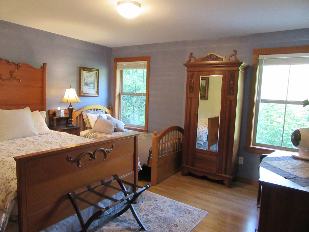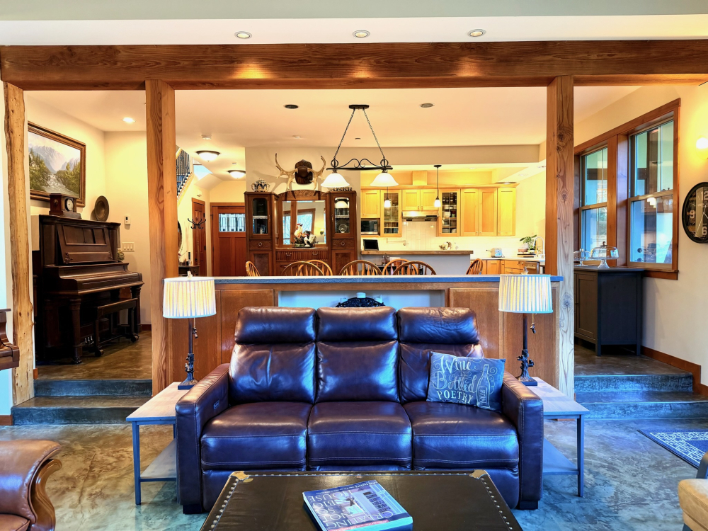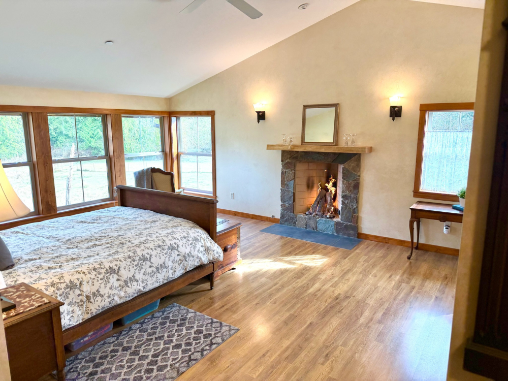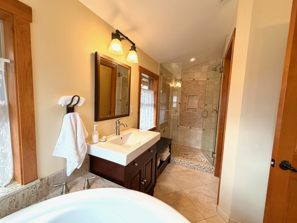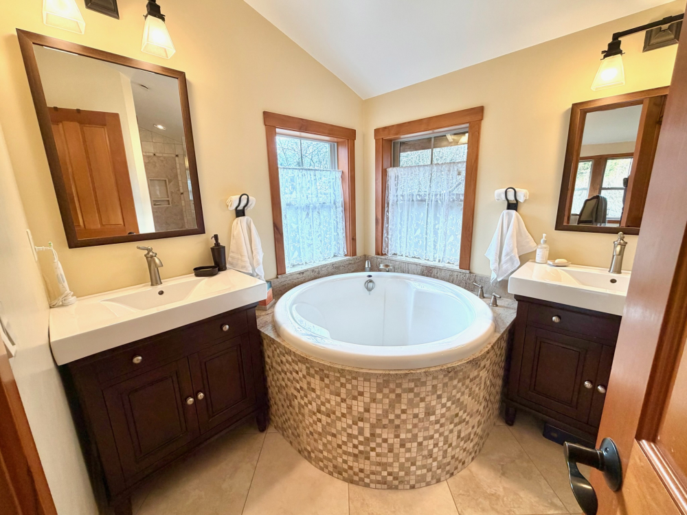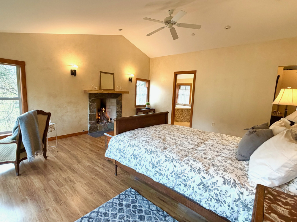 This B&B includes a spacious owner’s suite at the end of the upper level consisting of a large bedroom with a view and ensuite bath with a deep, partially recessed round soaking tub. The house also includes an additional 900sf unfinished bonus room over the garage as a blank slate for your imagination. We’ve hosted over 60 people there for various events.