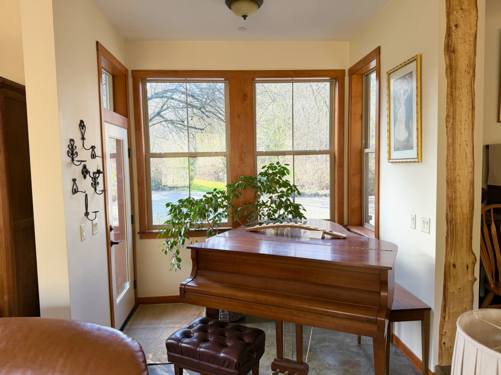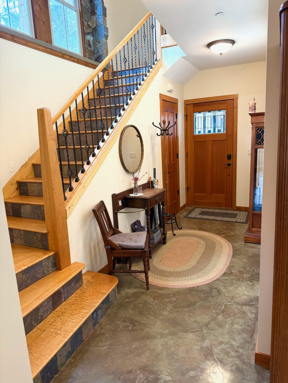 This 2800sf 4 bedroom and 2 3/4 bath house was built with high quality materials and excellent craftsmanship. It offers elegant, European charm inspired by our time in France’s Alsace region. Featuring real stone masonry, custom interior trim made from alder trees harvested on the house site, and beautifully handcrafted maple stairwell, also locally sourced.