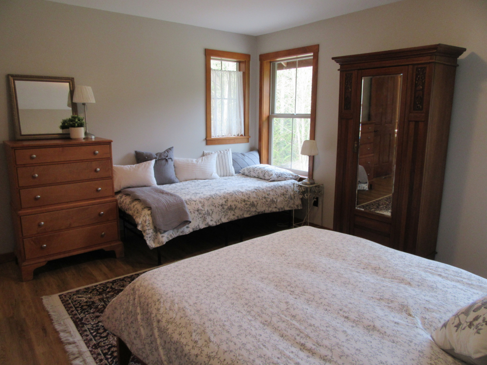 This secluded, woodsy setting for a quiet getaway is only 2 miles from town, just outside Duvall city limits. The area is highly sought after because of its proximity to the Remlinger Farms concert venue, Snoqualmie Trail, Woodinville Wineries, rural wedding venues, the nearby summer Renaissance Faire, and more. It is conveniently located 25 minutes to Redmond (and the new Light Rail system to Seattle and Sea-Tac airport), 40 minutes to Seattle, and 55 minutes to SeaTac airport. The lack of nearby hotels, and the BnB restrictions within city limits make this BnB a much needed service for the community.
